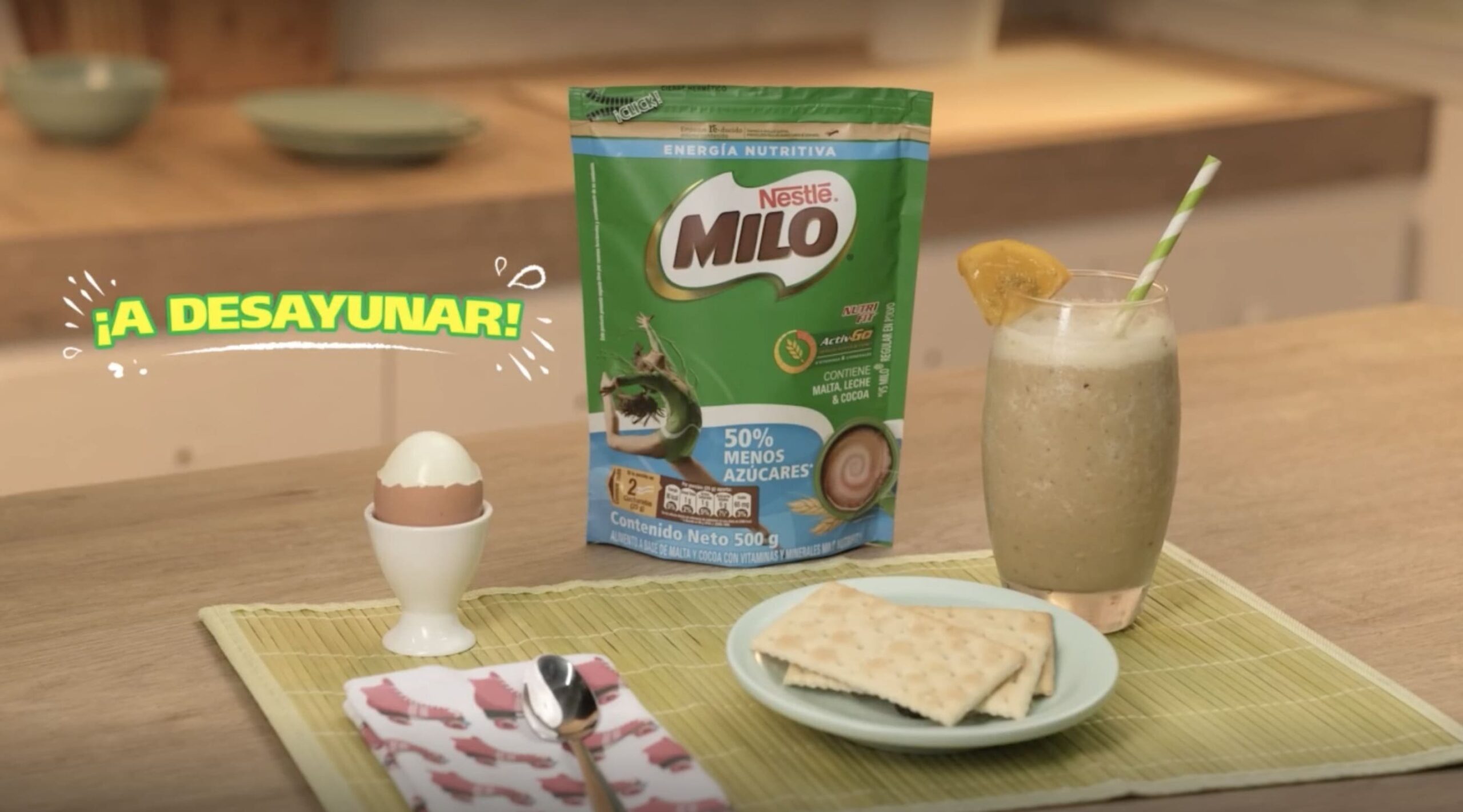 Aporte Nutricional: Un vaso de MILO® preparado en leche descremada aporta vitaminas (B2, B3, B6, B12, C, D) y minerales (calcio, hierro y fósforo), que junto con otros macronutrientes, ayudan con la energía diaria.
